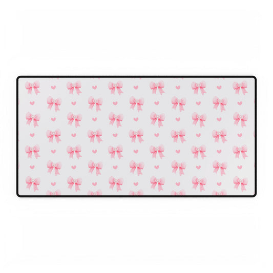 Cute Pink Bow Desk Mat, Stylish Office Decor, Gamer Mouse Pad, Desk Accessories, Gift for Her, Home Office Essentials