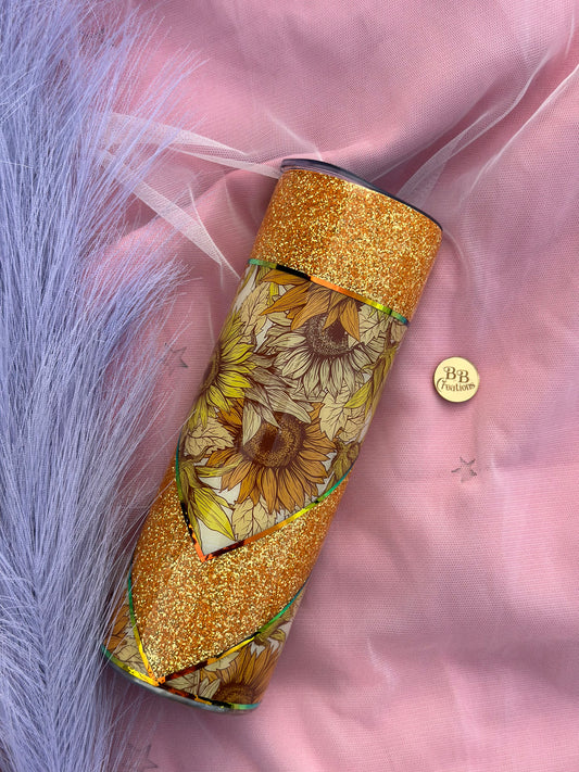 Sun Flower Tumbler glitter tumbler, sun flower, glitter cup, glitter made, flowers